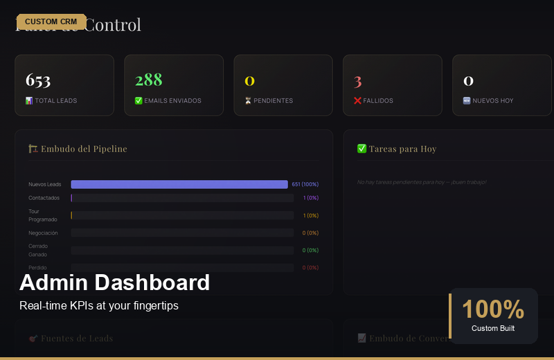 A fully custom dashboard built for your business — manage leads, properties, analytics, and team performance in one place.