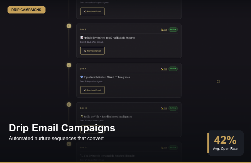 Intelligent Email & SMS sequences that reactivate dead leads and keep you top-of-mind 24/7.