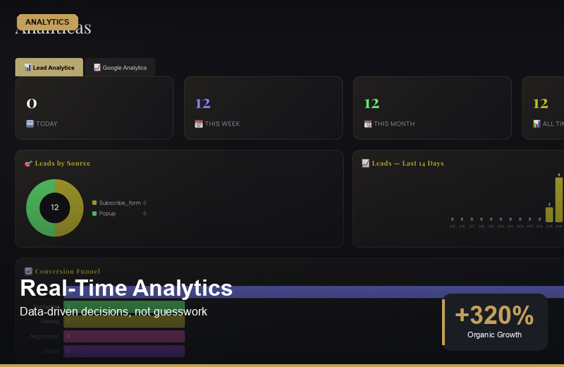 A fully custom dashboard built for your business — manage leads, properties, analytics, and team performance in one place.