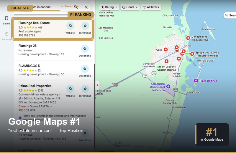 We dominate local search. Through aggressive Google Maps optimization, local SEO backlinks, and AI Answer Engine Optimization (AEO), we ensure that when someone searches for "best real estate agent near me", they only see you.